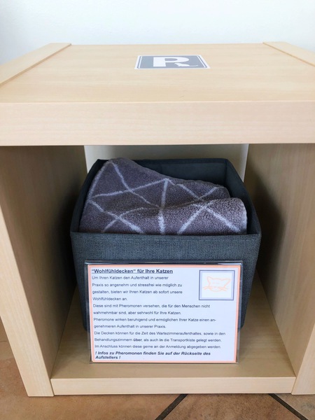 Zusätzlich stellen wir für Katzen pheromonbenetzte Tücher für mehr "Wohlfühlatmosphäre" zur Verfügung.