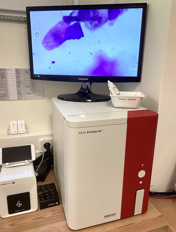 Zu den zahlreichen Blutuntersuchungen (Blutbild, großes Organprofil, Leberprofil, Elektrolytprofil, T4, Einzelwertbestimmungen, Lipase, Fruktosamin, Phenobarbital, cCRP), bieten wir auch Harn-, Kot- und mikroskopische Untersuchungen an.